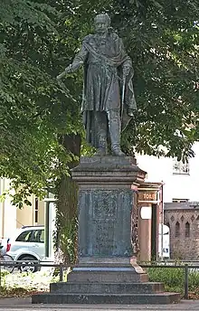 After Blücher's death, statues were erected to his memory at Berlin, Breslau, Rostock, and Kaub (where his troops crossed the Rhine in pursuit of Napoleon's forces in 1813).