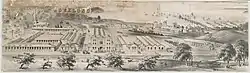In September 1853, Joseph La Trobe who was the Lieutenant-Governor of the colony marked the railway construction by turning on the first sod at Geelong station.[7][21] The construction process had not started until early 1854 but the project experienced a labor shortage due to the gold rushes hype at the current time.[15] The chairman announced in the second meeting of 1854 that the majority of required land from the terminus, Geelong station, to Cowies Creek station (now Corio station[22]) had been purchased or arranged with minimal difficulties.[18] Also, in the report, the chairman wrote that the Victoria government was generous and engaging as two hulks were placed at Cowies Creek (now Corio Bay[22]) to proceed the construction to Duck Ponds.[18]