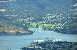 Geilston Bay (pronounced both "Jeels-ton and "Geels-ton", other pronunciations also possible)[lower-alpha 1] is a largely residential suburb of Hobart between Risdon Vale, Shag Bay, and Lindisfarne, in the City of Clarence located on the Eastern Shore of the Derwent River, taking its name from an inlet of that river of the same name. The inlet and locality were sometimes known by the alternative name "Limekiln Bay" on account of lime kilns which operated there between approximately the 1830s and the 1920s, the remains of which remained visible for some decades thereafter; another early name for the Bay was "James's Bay". The present suburb name derives from an early land holding "Geils Town" in the region purchased by Andrew Geils, Commandant of Van Diemen's Land (Tasmania) for a brief period in 1812-1813, who subsequently left his Australian holdings behind when he moved back to Scotland.
