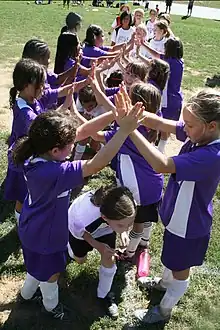 Messner and Bozada-Deas[4] studied yearbooks from a group of 538 youth baseball and softball teams and 1,490 from the American Youth Soccer Organization (AYSO) in 1999 to 2007. Only 13.4% of the teams had women coaches on the soccer team and only 5.9% of the team's management in baseball and softball were women. Team parents, whose sole duty is to take care of snacks, make phone calls to organize team events, hold fundraising, and providing support for the team players are predominantly filled by women.[5] Men prefer not to volunteer for team parent positions due to the responsibilities placed on them compared to those of the coach. Women's roles in sports are to hold the position of team parent, while men are usually head coach or assistant coach. Team parents are often labeled "team mom", making this position more likely for female parents than male parents.[2]