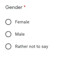 Some respondents will not want to indicate being either male or female and will wish for additional options.[3]