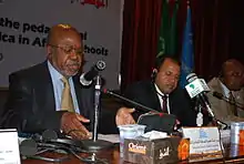- ↑ "Report by the Director-General on the execution of the programme (34 C/5) (01 January 2008 - 30 June 2009) Coordination and monitoring of action to benefit Africa" (PDF). UNESCO. 24 February 2009. Retrieved 11 January 2011.