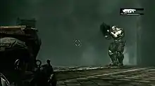 Gears of War is a third-person shooter game, with its core concepts being derived from Resident Evil 4's "over the shoulder" perspective, Kill Switch's cover system, and Bionic Commando's swinging action akin to moving between points of cover.[13] The series focuses on using cover to tactically engage the enemy in battle to avoid taking damage. While behind cover, the player can fire blindly and inaccurately at their opponent, or can look around the cover and aim carefully, though exposing to enemy fire; the player can slide along cover, move between nearby cover, or vault over cover to race to a new point of cover. As the player takes damage, the "Crimson Omen" appears on the HUD, becoming more defined as the player nears low health levels. The player can regenerate their health by staying out of harm's way for a short while. Should the player take too much damage, they will become incapacitated unless revived by a teammate; depending on game mode, the player may be able to recover from this state on their own, or may die after a short amount of time if not revived. When a combatant is down, a member of the other side may attempt to execute the downed player via a "curb stomp" or other brutal methods. Some types of damage will immediately kill the player with no chance of revival, such as explosive damage. There are five levels on the first two games; they are referred to as "acts" and each act is formed into a certain number of chapters.