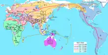 Specific East Asian-related ancestry is found among the Malagasy speakers of Madagascar at a medium frequency. The presence of this East Asian-related ancestry is mostly linked to the Austronesian peoples expansion from Southeast Asia.[58][59][60][61] The peoples of Borneo were identified to resemble the East Asian voyagers, who arrived on Madagascar. East Asian ancestry among Malagasy people was estimated at a mean average of 33%, but as high as ~75% among some Highlander groups and upper caste groups.[62][63][61]