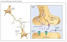 Arousal is related to dopaminergic functioning, and ADHD presents with low dopaminergic functioning.[35] Typically, a number of genes are involved, many of which directly affect dopamine neurotransmission.[36] Those involved with dopamine include DAT, DRD4, DRD5, TAAR1, MAOA, COMT, and DBH.[36][37][38] Other genes associated with ADHD include SERT, HTR1B, SNAP25, GRIN2A, ADRA2A, TPH2, and BDNF.[39] A common variant of a gene called latrophilin 3 is estimated to be responsible for about 9% of cases and when this variant is present, people are particularly responsive to stimulant medication.[40] The 7 repeat variant of dopamine receptor D4 (DRD4–7R) causes increased inhibitory effects induced by dopamine and is associated with ADHD. The DRD4 receptor is a G protein-coupled receptor that inhibits adenylyl cyclase. The DRD4–7R mutation results in a wide range of behavioural phenotypes, including ADHD symptoms reflecting split attention.[41] The DRD4 gene is both linked to novelty seeking and ADHD. The genes GFOD1 and CDH13 show strong genetic associations with ADHD. CHD13's association with ASD, schizophrenia, bipolar disorder, and depression make it an interesting candidate causative gene.[42] Another candidate causative gene that has been identified is ADGRL3. In zebrafish, knockout of this gene causes a loss of dopaminergic function in the ventral diencephalon and the fish display a hyperactive/impulsive phenotype.[42]