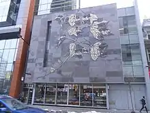 One of Cadieux's most prominent works is her 1992 piece La Voie lactée, a photograph of a woman's red lips displayed on the rooftop of the Musée d'art contemporain de Montréal.[11][12] It has since become an icon of Montréal.[13][14] In 2011, a sister piece, La Voix lactée, was commissioned by the Société de transport de Montréal as a gift for the Paris Metro, in exchange for the Hector Guimard Parisian metro entrance at Square-Victoria-OACI station.[13] Based on the theme of the French language binding France and Quebec, it features a mosaic reproduction of La Voie lactée, accompanied by a poem by Anne Hébert. It was installed at Saint-Lazare station.[15]
