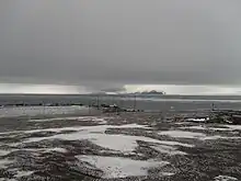 Heiss Island and Komsomol Island lie southeast of Zichy land. The Austria Strait separates Hall Island from Komsomol and the large Wilczek Island further to the northeast.[7] Heiss Island, also known as Kheysa or Chejsa island, is bound within latitude 80.55° N and longitude 57.50° E. It encompasses an area of 132.3 square kilometres (51.1 sq mi). Its mapped shore length is 55.2 kilometres (34.3 mi).[10] The abandoned Kheysa, Soviet rocket launching site, was located on this island.[17] In the Geophysical Year 1957–58, a new meteorological station, which over the years became the largest such station, was established on the banks of a small crater lake in the ice free zone of this island and named after Ernst Krenkel, an Arctic explorer. The station was closed in 2000 and abandoned buildings are still seen here. Another weather station was established in 2005. The island is named after the Arctic explorer, Isaac Israel Hayes.[18]