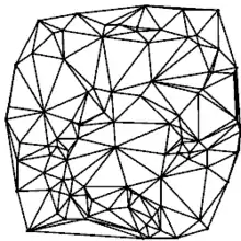 A triangular-based function can form a more tilted or irregular digital surface model. This approach is treated as the primary way to construct a complex DTM. Triangles have great flexibility, any polygons (e.g. a square, rectangle) can be decomposed into other smaller triangles.[20] A linked triangular network can incorporate break lines for plane fitting, it facilitates the formation of a curved facet/surface.[35] The minimum requirement for forming a triangle requires 3 data points, where the nearest 3 points are grouped to form a triangle by Delaunay triangulation without overlapping.[36]