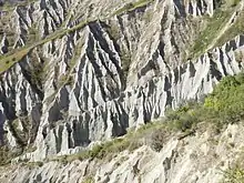 Sedimentary processes were affected from the orogeny in form of turbiditic deposits accumulating in nearby basins. In the North-east, Eocene age flysch shed off the Dinaric Alps can be found in the present-day foothills of Friuli region, while shallow water deposition (shale and carbonates) persisted in areas further away from the thrust belt. Paleontological evidences include the fish fossils of Bolca quarry ( close to Verona).
