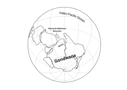The Heritage Range in the southern Ellsworth Mountains is home to several fossil sites from various geological eras, including the Late Cambrian and Late Permian. Based on the correlation of the fossils, it appears that the Ohio Range of the Horlick Mountains is where the fossils are most constant.[10] This is also consistent with the idea that the Pensacola Mountains of the Transantarctic Mountains previously bordered the Ellsworth Mountains.[10]