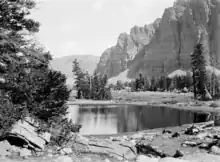 George Beard died October 3, 1944, at the age of 89.[2] One year before his death, Ralph B. Jordan wrote that "George Beard, of Coalville, is a man the world should know" when describing his life and career as an artist.[11] Beard named Mount Lovenia, a peak that sits in the Uinta Mountains, after his wife, Lovenia. Lake George Beard in Duchesne County is named after him.[12] Following his death, glass plate negatives of his photographs were donated to the L. Tom Perry Special Collections at Brigham Young University to be displayed. By using scans of these negatives as well as donations, BYU was able to curate an exhibit of 32 photographs and a few paintings to honor Beard in 1975.[3] From March to June 2017, Beard's great-great nephew Norm Thurston commissioned an exhibit curated by Herman du Toit at the Springville Art Museum. It showed 32 prints created from scans of the glass plate negatives housed at BYU and some of his landscape paintings.[7]