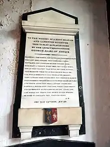 He had an illegitimate daughter, Harriet (1808–1837), who married Richard Ford (d. 1858) of Heavitree, Devon.[12] The Earl erected a mural monument to Harriet in the Essex Chapel of St Mary's Church, Watford.