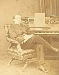 Powell was also "a fanatical devotee" of German composer Richard Wagner and attended the first performance of Wagner's Der Ring des Nibelungen as a complete cycle at Bayreuth, Germany, in August 1876.[8] In September 1876 Powell wrote to Swinburne that he had subsequently dined with Wagner and his wife Cosima.[8]