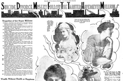 - ↑ In 1896, Anna's cousins Theodore Havemeyer and Henry Osborne Havemeyer funded the construction of Havemeyer Hall at Columbia University in honor of their father, Frederick Christian Havemeyer.[12] Another one of Anna's Havemeyer cousins was John Isaiah Northrop, the Columbia University professor who blew himself up in his laboratory at the Columbia School of Mines in 1891 and the father of Nobel Prize Laureate John Howard Northrop.