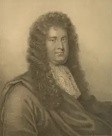 Granville was sent to France at the age of ten, with his tutor, William Ellis, who was a proponent of passive resistance and later a servant of James II at St Germain. He entered Trinity College, Cambridge in 1677.[3] Among his productions while there were poems welcoming Mary of Modena when she visited the university. In 1682, he went to Paris with his brother Sir Bevill Granville, where they studied fencing, riding, dancing, mathematics and military science. He stayed in France until 1687, accumulating a £500 debt. He then lived in England at his mother's house at Marr, near Doncaster. His early interests were literary and by the mid-1690s he had befriended John Dryden and begun to write plays.[4] He wrote an undistinguished comedy of manners entitled The She-Gallants, which was staged unsuccessfully in 1695. His adult plays bear the marks of Dryden's influence. The Heroick Love is taken from the first book of Homer's Iliad. Granville also followed Dryden in adapting Shakespeare and Granville's The Jew of Venice (1701) was a successful updating of The Merchant of Venice. Perhaps his greatest success was The British Enchanters (1705), a pseudo-operatic extravaganza staged by Thomas Betterton's company.