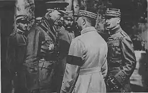 Milne was appointed to command XVI Corps in Salonika in January 1916 with orders to oppose Bulgarian advances on the Macedonian front.[18] When he succeeded Bryan Mahon as Commander-in-Chief of the British Salonika Army, Milne became overall Commander-in-Chief of British Troops in Macedonia on 9 May 1916.[19] As late as 3 June 1916 Milne was ordered by Robertson, now Chief of the Imperial General Staff (CIGS), not to participate in any attack on the Bulgars.[7] He was awarded the Grand Cross of the Order of the White Eagle (1st Class, with Swords) by the King of Serbia on 1 July 1916.[20]