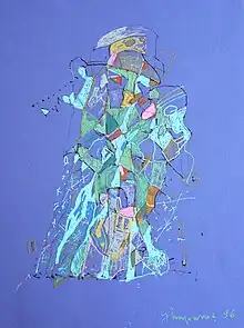 - ↑ Notes and References, p. 41, note 8, in "Georgeta Naparus" by Radu Bogdan, it is mentioned that "Legend" is painted on top of another painting, "In the parents' house", a painting exhibited in Belgrade and Zagreb in 1966, that had vague influences from Marc Chagall. "