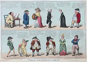 Average speed for carriages of this time was seven miles an hour. When general Tilney left Bath for Northanger, his 'handsome, highly-fed four horses' performed the journey of thirty miles at a sober pace, broken into two stages with a two hours' rest in between.[26] Even then, roads could be in poor state, as remarked by Mrs Norris, between Mansfield and Sotherton (Mansfield Park),[26] or even snowy. Normally only the privileged who earned seven hundred to a thousand pounds a year could afford a carriage, and driving sporting gigs and curricles was largely the preserve of the fashionable, elite male.[27]