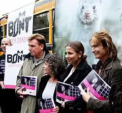 ![]() Verbaan supporting anti-fur campaign "Bont Voor Dieren", The Hague, 2008. | |