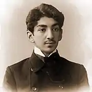The future artist was born in Tiflis, in the Armenian family of the famous lawyer Bogdan Galustovich Yakulov (Yakulyan): George was the youngest, ninth child, a darling and a favorite of his parents.[4] Father died in 1893, and mother, Susanna Artemievna (née Kananova), taking six children with her, she moved to Moscow, where George in the same year was assigned to the boarding school of the Lazarev Institute of Oriental Languages (expelled from the sixth grade in 1898 for disobeying the rules of the boarding school).[5] Unlike older brothers, Alexandra and Yakov, who have chosen a legal career, George showed interest in art and in 1901, after two months of classes at the school of K.F. Yuon, he entered the Moscow school painting, sculpture and architecture, however, for failure to attend classes in May 1903, he was expelled from the head class of the painting department and was soon drafted into the army. Served in the Caucasus (where he managed to paint), participated in the Russo-Japanese War, in a battle near Harbin he was wounded and in 1905 he returned to Moscow.[6][7]