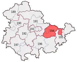 Gera – Jena – Saale-Holzland-Kreis was one of the 299 single member constituencies used for the German parliament, the Bundestag. One of nine districts covering the state of Thuringia, it covered the cities of Gera and Jena and the Saale-Holzland district.