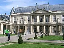 Born at Nantes, the son of a provincial architect, Boffrand went to Paris in 1681 to study sculpture in the atelier of François Girardon, before entering the large official practice of Jules Hardouin-Mansart. His uncle, Philippe Quinault, introduced him to prospective clients among the aristocracy of Paris and at Court. He was employed from 1689 (Kimball) on works in the Bâtiments du Roi under Mansart, notably at the Orangerie of Palace of Versailles and in Paris at Place Vendôme, where Boffrand was among the draughtsmen responsible for the first designs (from 1686) and for the Convent of the Capucins, Hôtel de Vendôme[2] From 1693 he was less employed and in 1699 he left the Bâtiments du Roi[3] to commence work, at first in Lorraine and in the Netherlands, then after his return to Paris in 1709, for a distinguished private clientele in Paris, well disposed towards his audacious innovations, such as the oval forecourt of the Hôtel Amelot de Gournay (1710–13), that were unthinkable in the royal works. In 1709, he was placed in charge of the interior apartments of the Hôtel de Soubise, where he soon succeeded the architect Pierre-Alexis Delamair (1676–1745). None of his early interiors survive, largely replaced by his spectacular Rococo work of the years following 1735.[4]