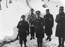 In August 1942, during the Partisan Long March west through the Independent State of Croatia (Croatian: Nezavisna Država Hrvatska, NDH), Josip Broz Tito's Yugoslav Partisans captured a group of eight Germans from the civil and military engineering group Organisation Todt near Livno.[1][2] The leader of the captured group was a mining engineer, Hans Ott, who was also an officer of the Abwehr, the Wehrmacht's intelligence organisation. The captured group had been identifying new sources of metal and timber for the Germans, but Ott had also been tasked by the Abwehr with making contact with the Partisans. Following their capture, Ott told his captors that he had an important message to deliver to Partisan headquarters, and after he had been taken there he suggested to the Partisans that his group be exchanged for Partisans held by the Germans in jails in Zagreb. On that basis, Ott was sent to Zagreb on parole,[3] where he met with the German Plenipotentiary General in Croatia, General der Infanterie (Lieutenant General) Edmund Glaise-Horstenau.[2] He advised Glaise-Horstenau that Tito was willing to exchange the eight Germans for ten Partisans who were being held by the Germans, Italians and NDH authorities. Glaise-Horstenau contacted the commander of the Italian 2nd Army, Generale designato d'Armata (acting General) Mario Roatta, who had most of the identified Partisan prisoners in his custody. On 14 August, the German ambassador to the NDH, SA-Obergruppenführer (Lieutenant General) Siegfried Kasche, sent a telegram to the Reich Foreign Ministry advising of the proposed exchange and asked the Ministry to intercede with the Italians. In his book Tito, Mihailović, and the Allies, 1941–1945, published in 1973, the former US diplomat Walter Roberts argued that the Abwehr considered some sort of modus vivendi with the Partisans might be possible, and were thinking of more than prisoner exchanges when they gave Ott the task of making contact with the Partisans. The number of Germans in Partisan custody had been increasing, and this made some sort of prisoner swap agreement more likely. These agreements were initially led by Marijan Stilinović on behalf of the Partisan Supreme Headquarters. On 5 September, a prisoner swap was completed in an area between Duvno and Livno, where 38 Partisans and family members were exchanged for one senior German officer who had been captured during the Battle of Livno in December 1942.[3]