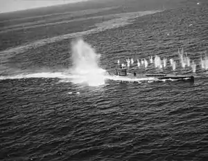 ![]() U-118 under attack by aircraft from USS Bogue | |