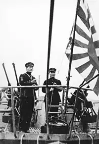 ![]() One of the few known photos of U-1224: Japanese officers on its conning tower at the hand-over ceremony to the Imperial Japanese Navy | |