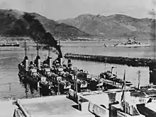 Möwe supported the North Sea mining operations that began on 3 September 1939.[12] During the Norwegian Campaign, the boat was assigned to Group 5 under Konteradmiral Oskar Kummetz on the heavy cruiser Blücher, tasked to capture Oslo on 9 April. Möwe transported 114 men of the invasion force and was one of the cruiser's escorts through the Kattegat and into Oslofjord. During the Battle of Drøbak Sound, the boat was in the rear of the German formation as it advanced up the fjord. After the Norwegian coast defenses crippled Blücher as she attempted to pass Oscarsborg Fortress, she was ordered to unload her troops at Son. Around 17:30 Möwe and her sister Kondor supported the occupation of Kopås and Husvik batteries near Drøbak. A little over an hour later, Möwe approached the main fort under a flag of truce, and her commander, Kapitänleutnant (Lieutenant) Helmut Neuss, demanded that it surrender; the fort's commander, Oberst (Colonel) Birger Eriksen, dragged out the negotiations until a more senior officer was sent. The next day, the torpedo boat escorted the heavy cruiser Lützow through the Oslofjord until word was received that her sister Albatros had run aground and been wrecked. Möwe was ordered to replace Albatros in the outer reaches of the Oslofjord. Lützow continued on to Germany without any escort and was torpedoed by a British submarine later that night off the Danish coast. Möwe and Kondor, among other ships, arrived the following morning to render assistance.[13]