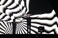The German performance featured Michael Schulte performing on stage in a black sweater, dark jeans and white trainers. The staging presentation included Schulte in front of a LED projection screen that displayed hand-drawn illustrations, images of people with their fathers and a series of vector animations in white, black and red colours which included several of the lyrics from the song's chorus and an infinite series of Schulte with white outlines against a black background when he spread his arms as the song progressed.[29][30] Germany placed fourth in the final, scoring 340 points: 136 points from the televoting and 204 point from the juries.[31]