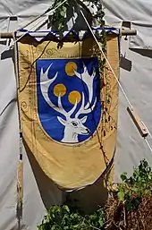 In medieval times, in Zürich all female and male Bürger were members of the guilds, but beginning in the 19th century women were no more tolerated within the guilds then more as decoration of their men being still members of the guilds of Zürich. The history of the Gesellschaft zu Fraumünsters dates back to the late 9th century when the abbess of the Fraumünster Abbey (853 A.D.) in fact reigned the city of Zürich as Fürstäbtissin (imperial abbess) nominated by the king of the Holy Roman Empire, among them Katharina von Zimmern.[2] Gesellschaft zu Fraumünster, being the society of the former noble women of the Fraumünster Abbey, was established in 1989. Now, the honorable women of the society cultivate the virtuous habits of the former abbey by p.e. honoring the work of engaged women in the modern society. Beginning fifteen years ago, the society started to organize every three years the so-called Mittelalter Spectaculum, a medieval funfair, at the Münsterhof square.