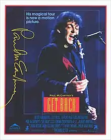 Get Back is a 1991 concert film starring Paul McCartney that documents The Paul McCartney World Tour of 1989–1990.[1] The film was directed by Richard Lester, who had done two films with McCartney when he was with The Beatles in A Hard Day's Night (1964) and Help! (1965). Lester went into retirement after the release of this film. Carolco Pictures and New Line Cinema, through the Seven Arts joint venture.