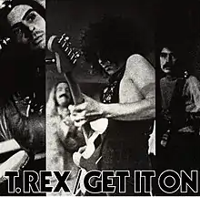 "Get It On" is a song by the English rock band T. Rex, featured on their 1971 album Electric Warrior. Written by frontman Marc Bolan, "Get It On" was the second chart-topper for T. Rex on the UK Singles Chart. In the United States, it was retitled "Bang a Gong (Get It On)" to avoid confusion with a song of the same name by the group Chase.[4]