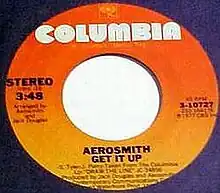 "Get It Up" is a song by American hard rock band Aerosmith. Written by lead singer Steven Tyler and guitarist Joe Perry, the song features Karen Lawrence, singer of the band L.A. Jets, on the chorus. It was released in 1978 as the third and final single from their album Draw the Line. The single also included "Milk Cow Blues" as a B-side. The single failed to break into the singles chart. The guitar is noted for its usage of slide guitar. The single had a reference to the next track on the album, "Bright Light Fright". The song was played occasionally by the band during the Aerosmith Express Tour from 1977 to 1978 in support of the Draw the Line album.