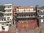 Dashashwamedh Ghat is located close to the Vishwanath Temple and is the most popular ghat.[7] According to legend, Brahma performed ten Ashwamedha sacrifices here.[5] Every evening an aarti is performed at this ghat in dedication to Shiva, the goddess Ganga, Surya, Agni, as well as the whole universe.[5]