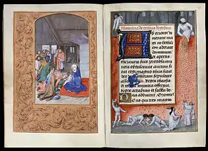 The Ghent-Bruges school is a distinctive style of manuscript illumination which was prevalent in the Southern Netherlands (mainly present-day Belgium) from about 1475 to about 1550.[1] Though the name highlights the importance of Ghent and Bruges as centres for manuscript production, manuscripts in the style were produced in a wider area.[2]