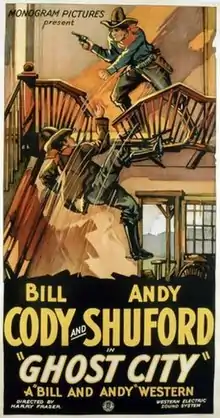 Ghost City is a 1932 American western film directed by Harry L. Fraser and starring Bill Cody, Andy Shuford and Helen Foster.[1] It was distributed by Monogram Pictures which specialized in low-budget second features, many of them westerns.