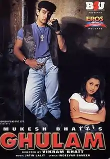 Ghulam (transl. Slave) is a 1998 Indian Hindi-language action film, directed by Vikram Bhatt, and starring Aamir Khan and Rani Mukherji in lead roles. The plot of the movie is similar to Vishesh Films' first production Kabzaa (1988), starring Sanjay Dutt,[2] in turn inspired by Elia Kazan's On the Waterfront (1954).[3]