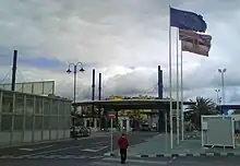 The border runs east–west for a total of 1.2 kilometres (0.75 mi) separating Gibraltar from the neighbouring Spanish municipality of La Línea de la Concepción.[3] Since Gibraltar (like the United Kingdom) is outside the European Union's Schengen Area, identity checks are required to cross the border.[4]