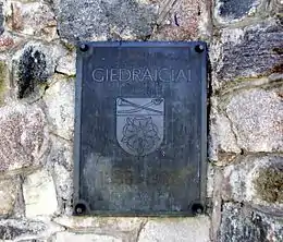 In 1410, Church of St. Bartholomew the Apostle was built. It was rebuilt in 1809 in the Classicism style by Bishop of Samogitia Józef Giedroyć (Lithuanian: Juozapas Giedraitis), whose princely family originated from Giedraičiai. In 1838, after his death and according to his wishes, Józef Giedroyć's heart was inlaid into one of the walls. In the mid-19th century a new bell tower was built. It is interesting because of unusual design: stone walls are decorated with red bricks.