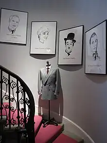 Drawings of some of the customers of Gieves & Hawkes on Savile Row, such as the Duke of Cambridge, Diana, Princess of Wales, Charlie Chaplin, and Sean Connery