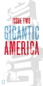 Issue 2 was titled "Gigantic America" and focused on themes of Americana. The magazine was printed in a bound elongated format and included a series of limited edition trading cards designed by Andre Da Loba[1] backed with writing by Deb Olin Unferth, Joe Wenderoth, Clancy Martin, Margo Jefferson, and others. Other writers in the issue included Blake Butler, Robert Coover, Lydia Millet, Sam Lipsyte, and comic artist Adrian Tomine.