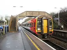 The track serving the northern platform is signalled for trains to run in either direction so most trains use this platform unless two need to pass. The southern platform, which is reached by a footbridge, is then used for the westbound train.