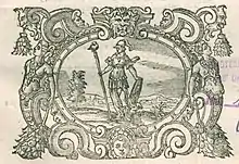 Born in Siena, Ciotti moved to Venice at a very young age where he frequented the circle of typographers and booksellers. He began to print on his own in 1583. Ciotti's publishing production, at first sporadic, gradually increased starting from 1591, the year in which he became the owner of his own publishing shop and adopted the image of a Minerva armed with a spear and shield as his publisher's device. About sixty books published by Ciotti before 1600 have been recorded, with an average of more than five publications a year, a number that increased in the new century. All editions were printed in Venice, except for one work by Antonio Piccioli published in Bergamo in 1587.[1] In the last decade of the 16th century he became the owner of the prints of the Venetian Academy; therefore from 1594 on the title page of some works published by Ciotti his name is defined as "librarian and printer of the Venetian Academy", while from 1606 the nickname "Academico Venetiano" will appear.[2] In 1597 he adopted as an emblem of his workshop "at the sign of the Dawn", represented by a celestial woman among the clouds with a star on her head, who precedes the sun, reducing the night darkness and dispensing light. From 1607 to 1615 Ciotti joined forces with Bernardo Giunta, giving rise to an enterprise which published at least 87 editions in nine years; the two used a sumptuous letterpress representing Tuscany with the ducal crown on the head and the Giunti lily in the left hand.[3] Ciotti often did not limit himself to the activity of typographer, but also assumed the functions of editor of the books, introducing dedications and prefaces signed by him to the works that came out of his workshop. He therefore had considerable relationships with the authors. Alongside legal books and ancient classics, Ciotti published numerous editions of scientific texts and, above all, of literary works and religious and theological writings. Ciotti was one of the most active international publishers of his day. He regularly visited the Frankfurt Book Fair from 1583 onwards.[4] In 1590, in Frankfurt, he met Giordano Bruno, to whom he transmitted the invitation of the Venetian patrician Giovanni Mocenigo to move to Venice.