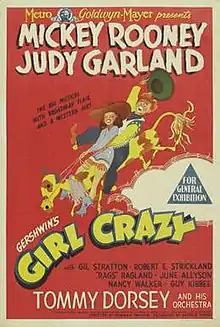 Girl Crazy is a 1943 American musical film starring Judy Garland and Mickey Rooney. Produced by the Freed Unit of Metro-Goldwyn-Mayer, it is based on the stage musical Girl Crazy – which was written by Guy Bolton and Jack McGowan, with music and lyrics by George and Ira Gershwin. It was the last of Garland and Rooney's nine movies as co-stars, the pair appearing only once more together on film, as guest stars in 1948's Words and Music.