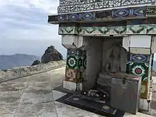 After the Amba mata temple, at the peak of the hill, is a temple for the Hindu god Lord Dattatreya with a stone carving symbolizing his padukas.