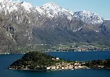 Panoramic view of Lake Como with Bellagio at the foot of the Ghisallo