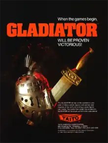 Gladiator, known in Japan as Ougon no Shiro (黄金の城, lit. "Golden Castle"), is an arcade video game developed by Allumer and published in 1986 by Taito.[1] It was followed by a sequel titled Blandia. Home ports of Gladiator were released for the ZX Spectrum, Amstrad CPC and Commodore 64 as Great Gurianos; the Spectrum version was intentionally made unwinnable.[2]