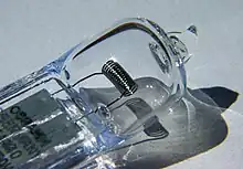 Another possibility of seal construction is the compression seal. This type of glass-to-metal seal can be used to feed through the wall of a metal container. Here the wire is usually matched to the glass which is inside of the bore of a strong metal part with higher coefficient of thermal expansion. Compression seals can withstand extremely high pressures[lower-alpha 1] and physical stress such as mechanical and thermal shock.[13]